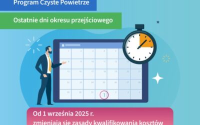 Przypominamy, że do 31 sierpnia 2025 r. trwa okres przejściowy w programie Czyste Powietrze. To ostatnia szansa, by złożyć wniosek o dofinansowanie na inwestycje rozpoczęte po 28 […]