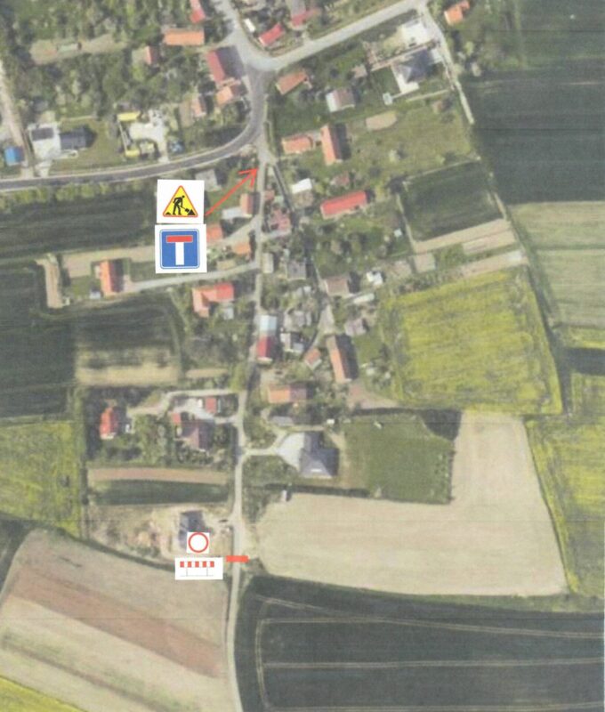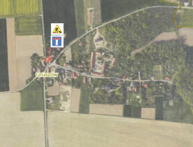 W związku z realizacją inwestycji budowlanej ,,Budowa sieci kanalizacji sanitarnej w miejscowości Śmiałowice” w dniach od 06.08.2025r. do 22.08.20254r., nieprzejezdna będzie droga do działki nr 140 Gruszów – obręb 0014 Śmiałowice oraz od posesji 11D w kierunku posesji Śmiałowice 12.